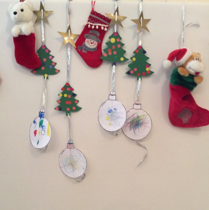 Aujourd'hui fabrique de Guirlande de Noël fait par T.30 mois, N. 33 mois, Ti 30 mois et L.18 mois et avec l'aide de Nounou Elisabeth.