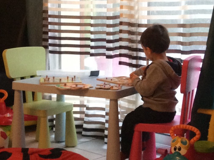 L. 20 mois est le roi du puzzle à encastrement, nous travaillons sur les couleurs, les formes et le nom de animaux de la ferme et les gens du cirques.